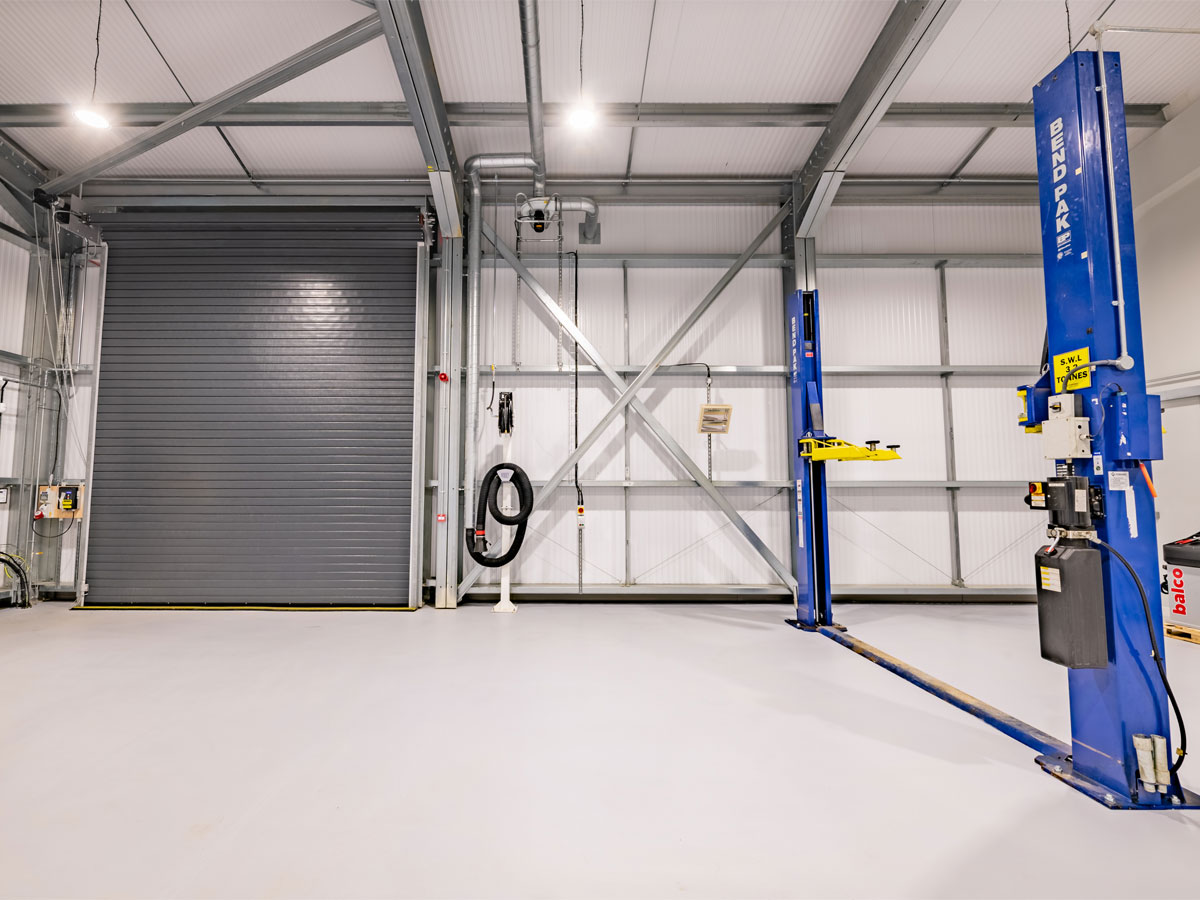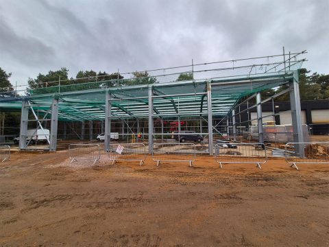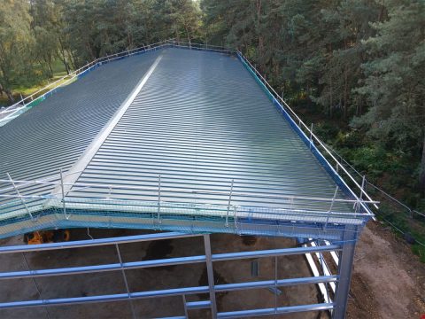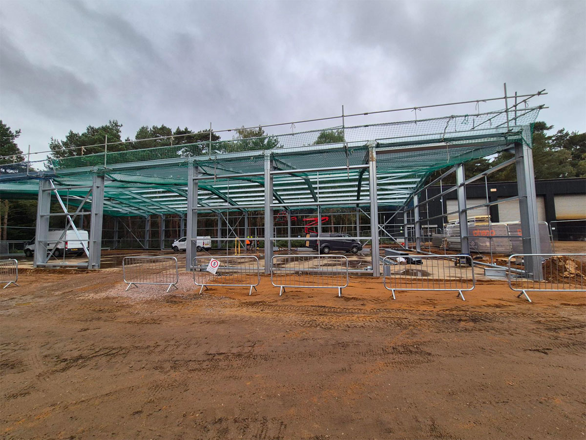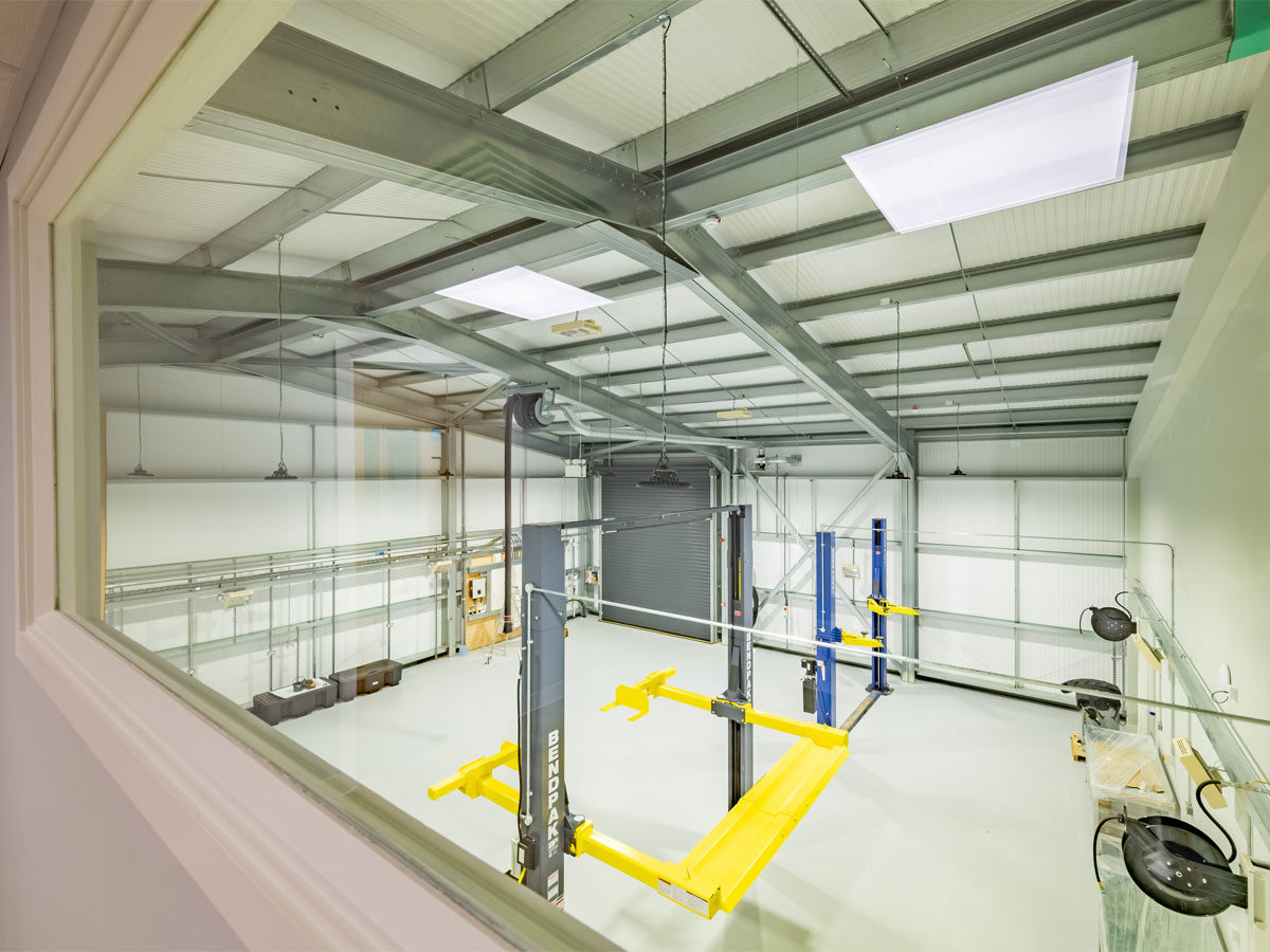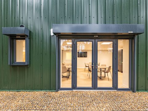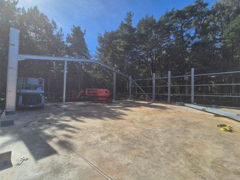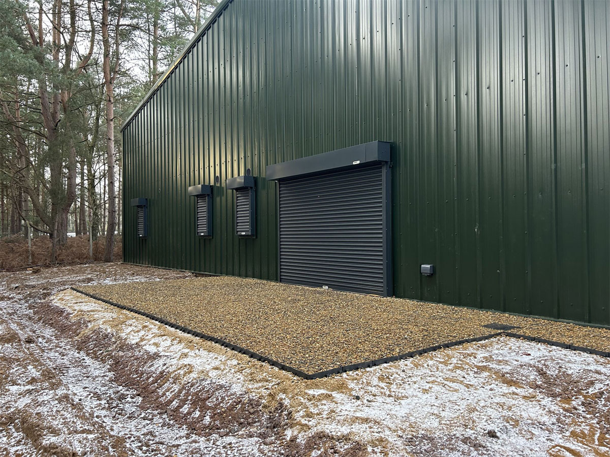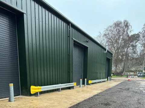 Working with the Course Manager, MD, the Woburn Estate property team and their architects, we designed the building using one of our bespoke cold rolled frames, and fully insulated Tata composite panels. British made high quality 3 phase industrial roller doors, windows, PA and fire escape doors, all with shutters completed the spec. The client wanted a turnkey solution, so we introduced a contractor to act as PC and look after groundworks, drainage, fit out and M&E.